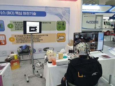 뇌 신호를 분석해서 가전제품을 켜보는 체험을 할 수 있습니다